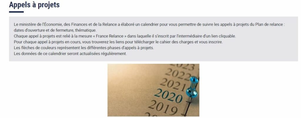 plan de relance, plusieurs appels à projets rattachés à des mesures de « France Relance »