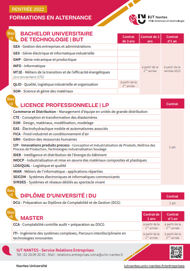 Vous serez ensuite en relation avec le service formation continue et apprentissage de l’IUT et le CFA FormaSup Pays de la Loire.